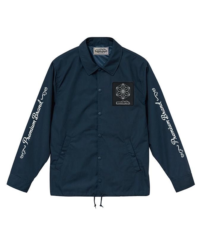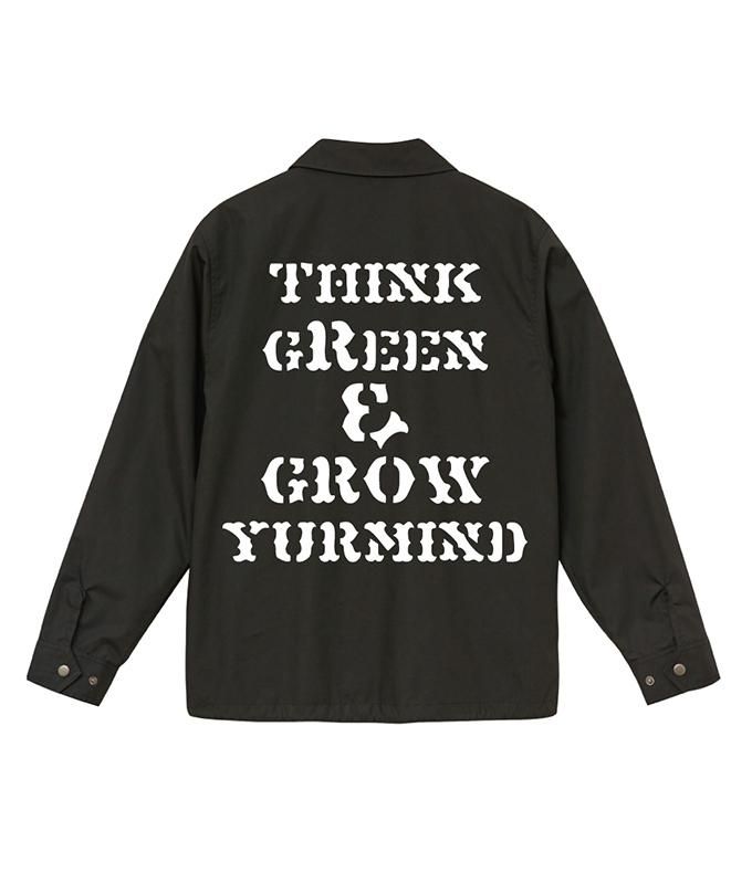胸には麻柄がワッペンで、袖にはpremium brand,背中にはThink green and grow yur mindがプリントで入ります。90’sのwest coastっぽい雰囲気を醸し出すジャケットです。