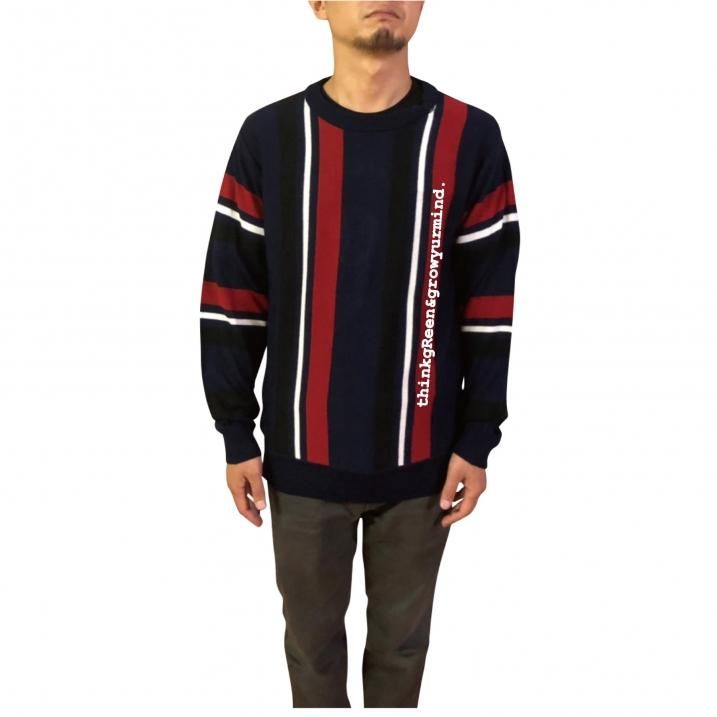 美配色のストライプニット。素材はアクリル100%。ロゴは刺繍です。おすすめ!