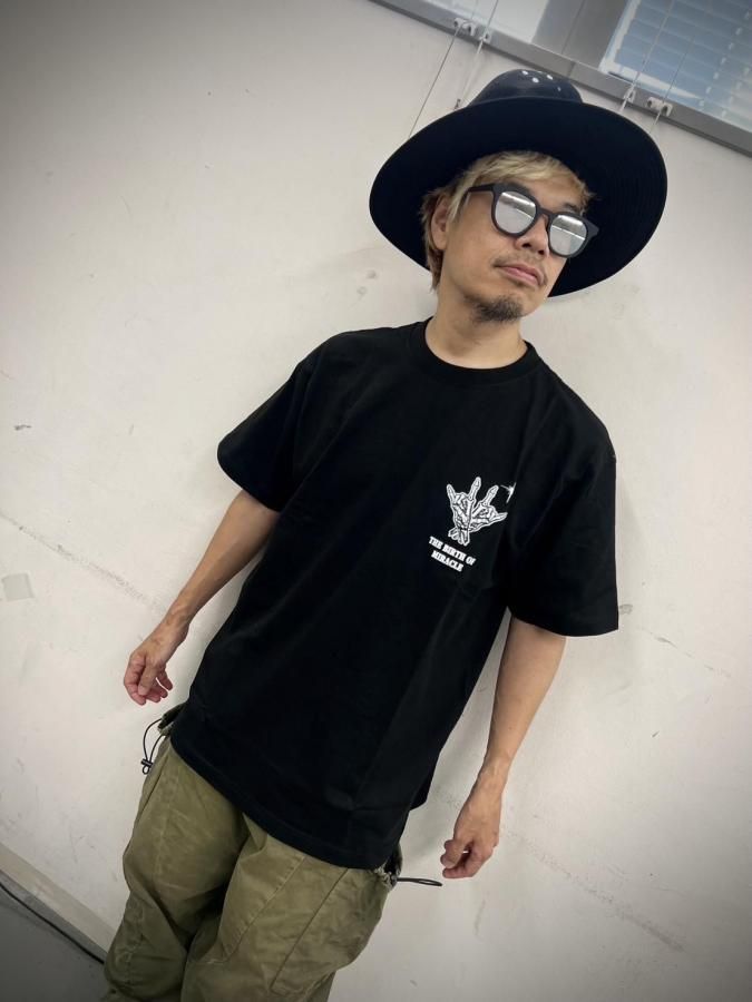 エンジェルとメロイックサインの祝福があるグラフィック 着用モデル / 10-FEET TAKUMA size spec /cm 着丈/ M69cm, L73cm, XL77cm, XXL81cm 身幅/ M52cm, L55cm, XL58cm, XXL61cm