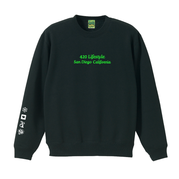 420 lifestyle San Diego Califoniaが胸に、seedleSsが背中に、袖には各種サインマークがプリントで入ります。 12ozの裏起毛のしっかりした生地を使用してるので保温性も高いです。おすすめ。 サイズスペック 着丈:M69cm, L72cm, XL75cm, XXL78cm 身幅:M55cm, L58cm, XL61cm, XXL64cm