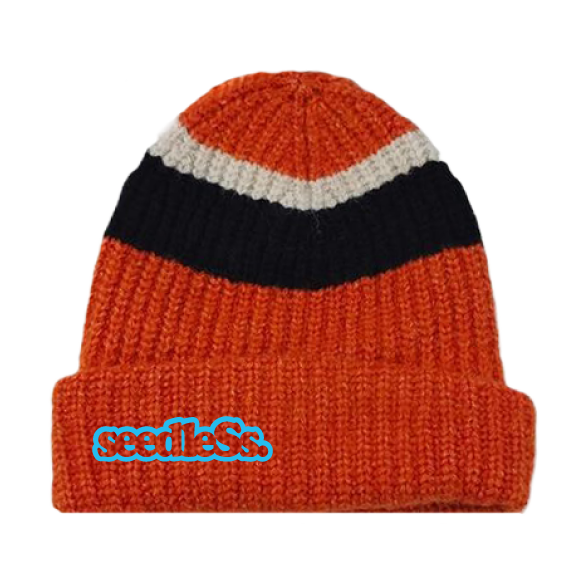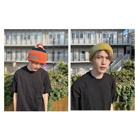 柔らかめながらしっかり厚さもある生地のストライプニット帽。ロゴは刺繍。売れ筋。おすすめ